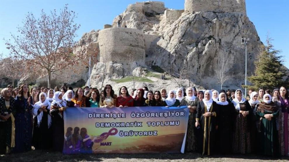 TJA, Wan Kalesi’nde ulusal kıyafetler eşliğinde 8 Mart Dünya Kadınlar Günü kapsamında etkinlik düzenledi. Çok sayıda kadının katıldığı etkinlik, halaylar eşliğinde başladı. Açıklamada, üzerinde saç örgüsünün yer aldığı “Direnişle özgürleşiyor demokratik toplumu örüyoruz” yazılı pankart açıldı. Kürtçe yazılan basın metnini TJA aktivisti Arife Aslan okudu.
