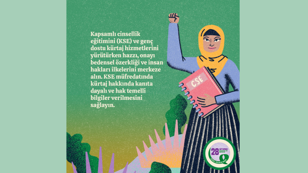 Kampanyaya katılan Kadının İnsan Hakları Derneği de kampanyanın dijital medya görsellerini Türkçe’ye çevirdi. Kürtaj hizmetinin sağlanmasının önündeki tüm politik engellerin kaldırılmasını isteyen Kadının İnsan Hakları Derneği, “Yasal tanımları genişleterek, azami süre sınırlarını artırarak ve üçüncü taraf onayını kaldırarak güvenli kürtaja erişimin kapsamını genişletin” dedi.
