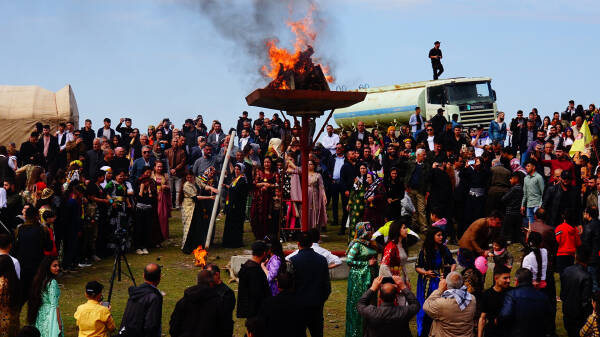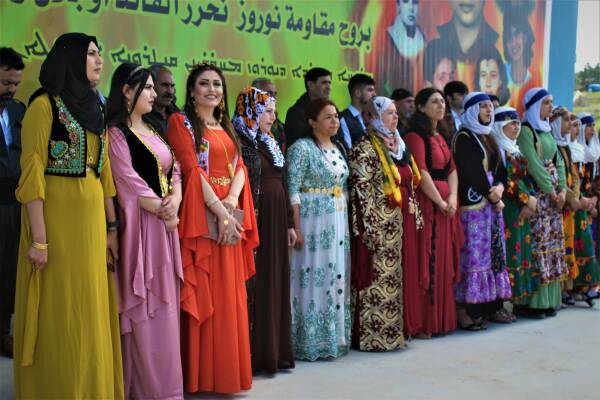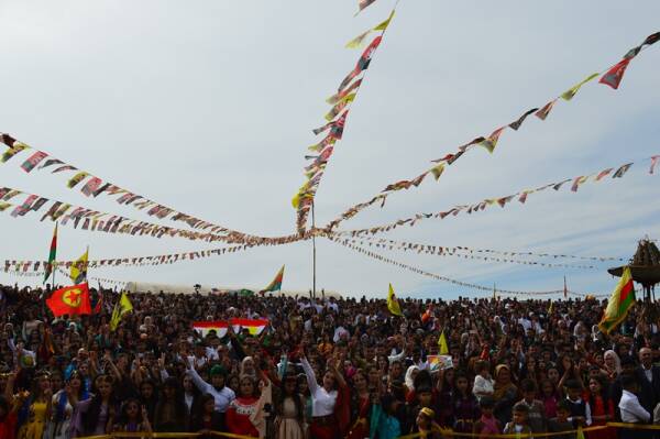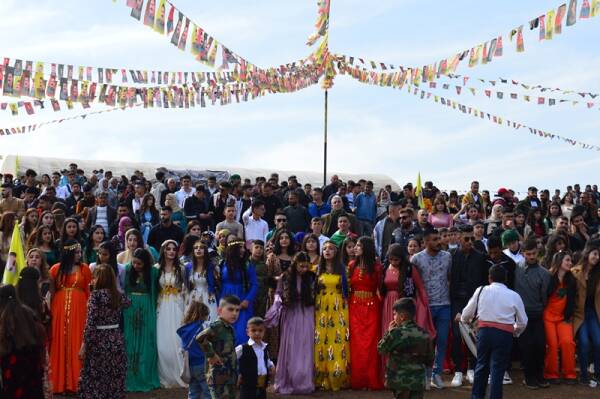 Kürt, Arap, Süryani, Ermeni, Çerkez, Türkmen on binlerce yurttaşın ulusal kıyafetleriyle katıldığı kutlamalarda Newroz ateşleri şehit aileleri tarafından yakıldı.