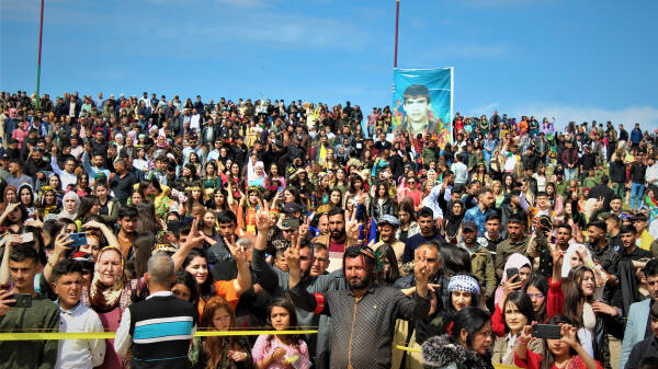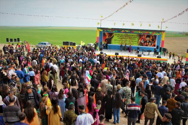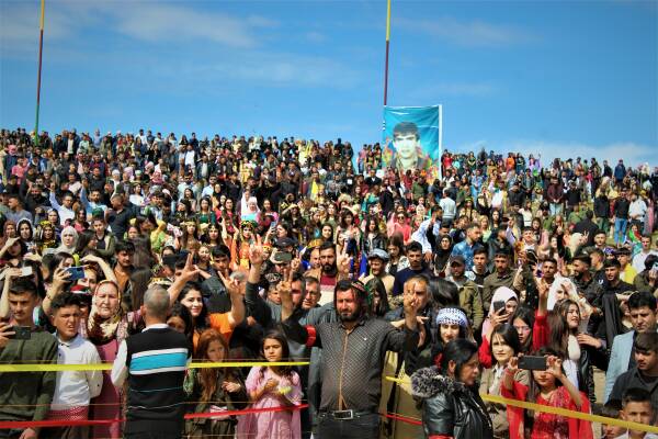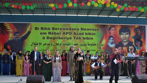Tecride karşı mücadelenin yükseltilmesi ve Kürt Halk Önderi Abdullah Öcalan’ın fiziki özgürlüğünün sağlanması kararlılığının damgasını vurduğu Newroz kutlamalarında, sık sık “Bijî Serok Apo”, “Bê Serok jiyan nabe”, “Bijî Bêrxwedana Rojava”, “Bijî Newroz” sloganları atıldı.