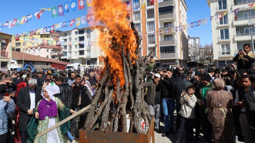Daha sonra konuşan DBP Eş Genel Başkanı Keskin Bayındır ise yılın ilk Newroz ateşini Ehmedê Xanî’nin diyarında yaktıklarını belirterek, “Newroz ateşi bin yıldır Kürt halkının umudu ve birliğinin sembolü olmuştur. Bugün bu meşale Kürt gençlerinin elinde zulme karşı yanıyor” dedi.
