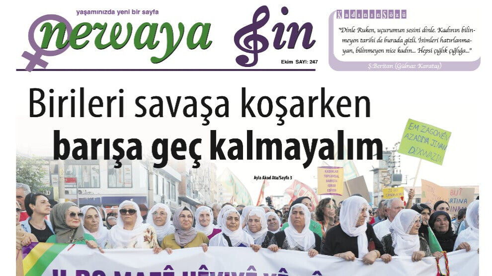 Newaya Jin’in Ekim sayısı; “Birileri savaşa koşarken barışa geç kalmayalım” manşetiyle okuyucusuyla buluştu.