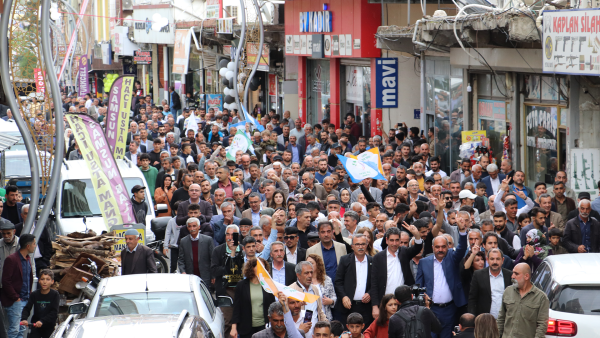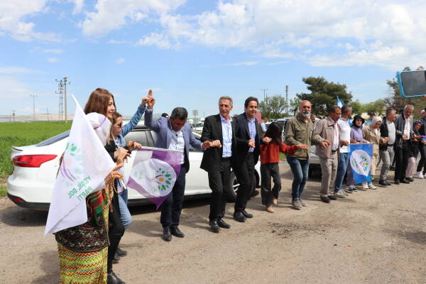 Farqin’de (Silvan) Yeşil Sol Parti’nin düzenlediği halk buluşması ve büro açılışına binlerce yurttaş katıldı. Yüzlerce araçlık konvoyla ilçe merkezine gelen heyeti yüzlerce kişi karşıladıktan sonra çarşı merkezinde halkla bir araya gelen heyet seçim bürosuna kadar yürüyerek geçti. Kitle içerisinde yer alan kadınlar ve gençler sık sık, “Jin, Jiyan, Azadi” sloganı attı.