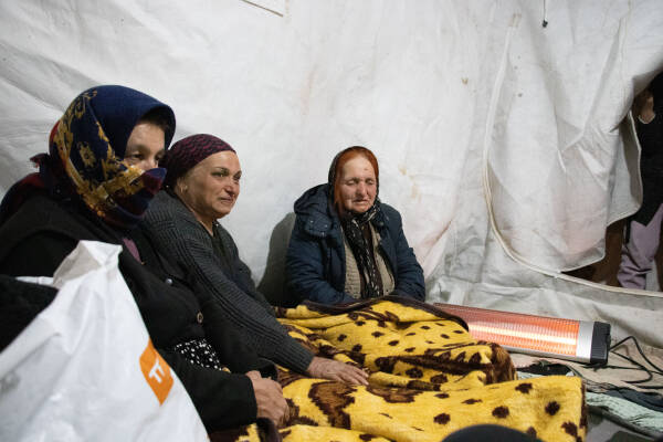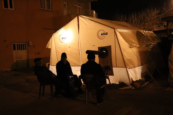 İlerleyen yaşı nedeniyle eşiyle birlikte bir çadırda soba önünde kalan Rabia Çetin ise, “Burada ilk gece bütün mahalle tek bir çadırda kaldık. Dört gün boyunca tek bir çadırda soğuktan donmamak için hep birlikte uyuduk. Ölmemek için her an yan yanaydık. Benim torunlarım burada soğuktan donmasınlar diye şehir dışına çıktılar. Şimdi de ben ve eşim burada bir çadırda yaşıyoruz. Bu çadırı da bize hemşire olan kızım gönderdi. Yoksa dışarıda soğuktan donardık. Yemeği de suyu da bize komşularımız getiriyor” dedi.