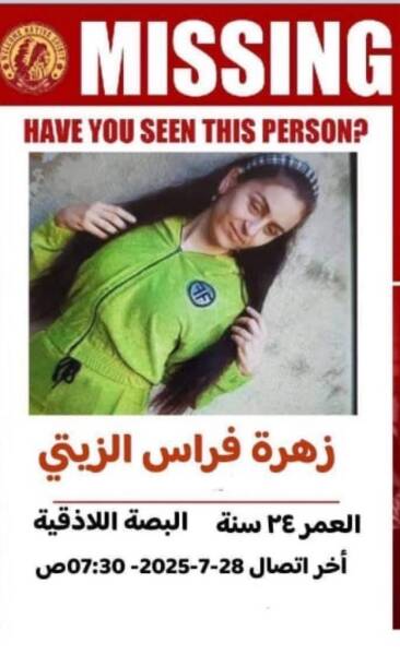 *Zeynep Gadir (17), 27 Şubat’ta Lazkiye’de kaçırıldı ve akıbeti hâlâ bilinmiyor.