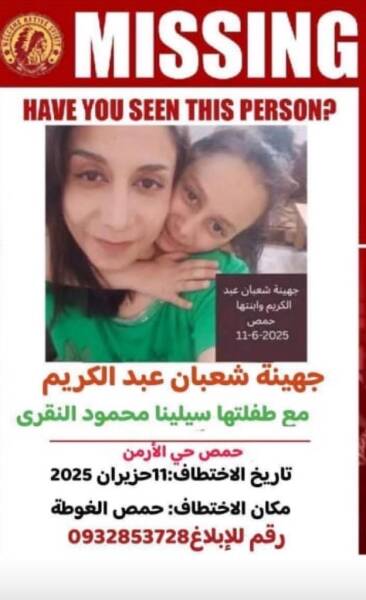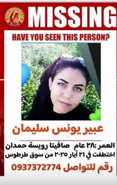 Kaçırılan çocuk ve kadınların bazıları şu şekilde: “*Abir Süleyman (29), 21 Mayıs’ta Safita’da kayboldu. Kaçıranlar 15 bin dolar fidye talep etti ve daha sonra Irak’tan bir telefon alındı, ancak yeri hâlâ bilinmiyor.