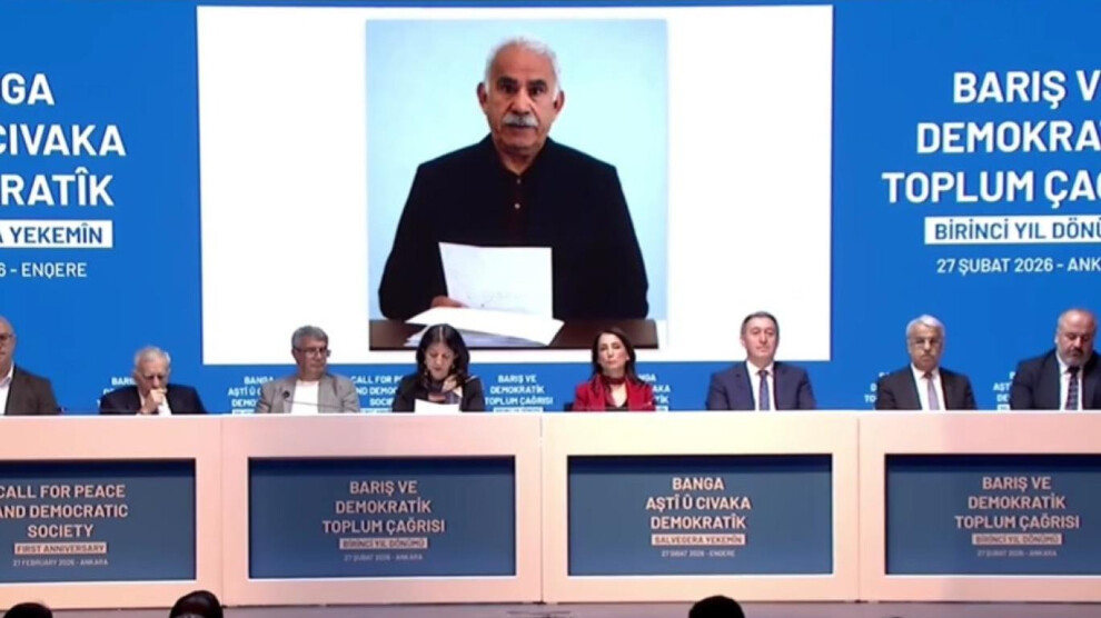 “27 Şubat’ta Sayın Abdullah Öcalan tarafından paylaşılan Barış ve Demokratik Toplum Çağrısı, bir dönemin kapanışı ve yeni dönemin başlangıcı oldu. Bu çağrı güçlü bir siyasi irade beyanı ve tarihsel bir manifestodur. Yarım asırdır devam eden savaşın, çatışmanın, yoksulluğun ve acının yükünü taşıyan bu ülkenin kuzeyinden güneyine doğusundan batısına ayrım gözetmeksizin herkes eşitlik için özgürlük ve demokratik bir yaşamın teklifiydi. Sadece silahların susması değil, onurlu kalıcı ve adil bir barış düzenin kurulması hedeflenmektedir. Bu yönüyle 27 Şubat geleceği yeniden kurma cesaretidir. Sayın Öcalan’ın cesaretli çağrısına örgütü olumlu bir yanıt vermiş, feshi kararı almış, silah yakma ve diğer pratiklerle bu çağrının gerekliliklerini yerine getirmiştir.