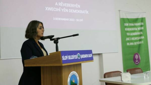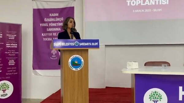 Şırnak -  Halkların Demokratik Partisi (HDP) Demokratik Yerel Yönetimler Kadın Kurulu tarafından Şırnak’ın Silopi ilçesinde düzenlenen 2 günlük ara dönem toplantısı başladı. Toplantıya, HDP Kadın Meclisi Sözcüsü Ayşe Acar Başaran’ın yanı sıra HDP il ve ilçe belediye eşbaşkanları katıldı. Silopi Belediyesi konferans Salonu’nda yapılan toplantıda, “Kadın özgürlükçü yerel yönetimleri savunma ve kayyım rejimini yıkma zamanı”, “Kayyım rejimini yıkma ve demokratik yerel yönetimleri inşa zamanı” pankartları asıldı.