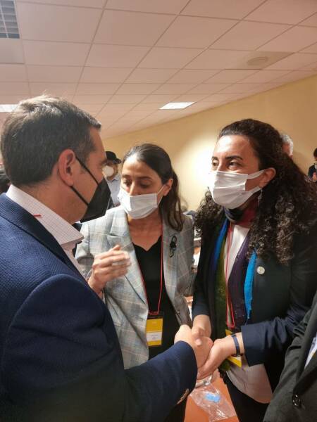 Haber Merkezi – HDP Parti  Sözcüsü Ebru Günay, HDP Dış İlişkilerden Sorumlu Eş Genel Başkan Yardımcısı Feleknas Uca ve HDP Van Milletvekili Sezai Temelli'den oluşan heyet, 13 Nisan’da Atina’ya gitti. Heyet, ziyaret programının son gününde SYRIZA kongresinin uluslararası katılımcı oturumlarında da bir dizi görüşme gerçekleştirdi. Ayrıca HDP Eş Genel Başkanı Mithat Sancar'ın kongreye hitaben gönderdiği video mesajı da genel kurul salonunda yayımlandı.