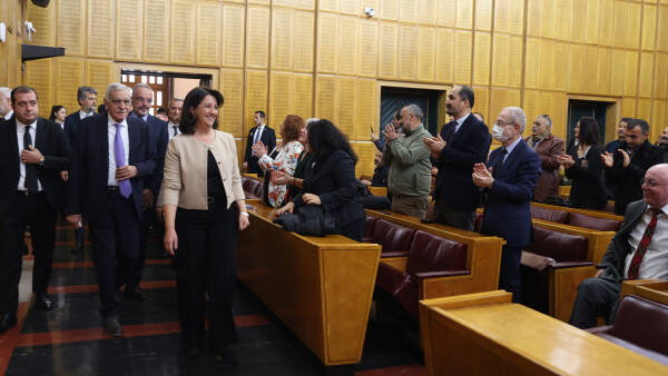 Konuşmasına katledilişinin 16’ıncı yılında Hrant Dink’i anarak başlayan Pervin Buldan, Emek ve Özgürlük İttifakı’nın İstanbul mitingini coşkuyla gerçekleştirdiklerini belirterek “Savaşa, yoksulluğa, sömürüye, tecride, adaletsizliğe hep birlikte hayır dedik. Bu ülkeyi karanlığa teslim etmemek üzere o meydanda halkımızla sözleştik. Bu ülkeyi elbette karanlığa teslim etmeye karşı yan yana gelişi gerçekleştirdik. Emek ve özgürlükle değiştirmek için söz birliği yaptık, güç birliği yaptık. Orada da söyledik, burada da söylüyoruz, bu daha başlangıç. Büyüyerek, güçlenerek, daha da çoğalarak geliyoruz” dedi.