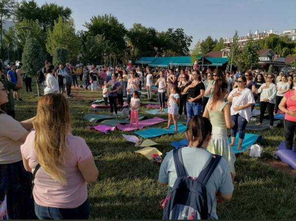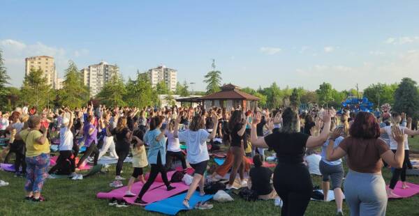 Yüzlerce kadın birlikte yoga yaptı